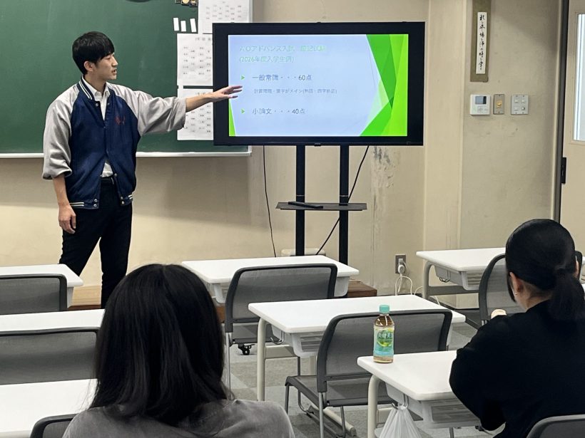 AOアドバンス入試では「筆記試験」と「小論文」が行われます。講座では、過去問題の解説や小論文の書き方など、わかりやすく解説しました。
