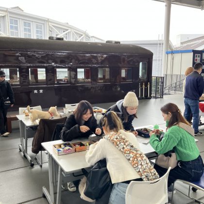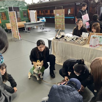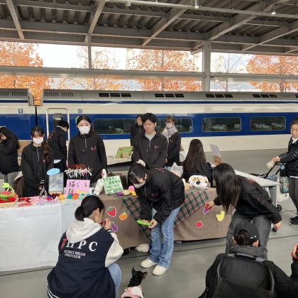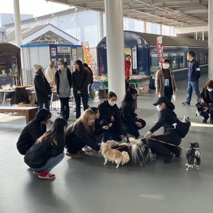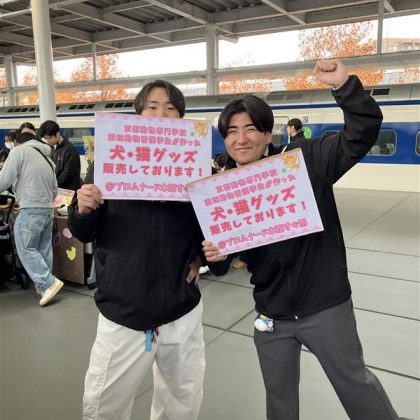 京都鉄道博物館にブース出展しました 2025.11.27. 学校の様子学生生活 11月26日に京都鉄道博物館でイベント「ペットと一緒に!京都鉄道博物館」が開催されました。 本校の愛玩動物看護学科2年生がブース出展しました 手作りしたペットグッズを販売。利益を「京都動物愛護センター」に寄付します たくさんのワンちゃんと飼い主さんがブースに足を運んでくださいました。お買い上げいただいた皆さま、ありがとうございました