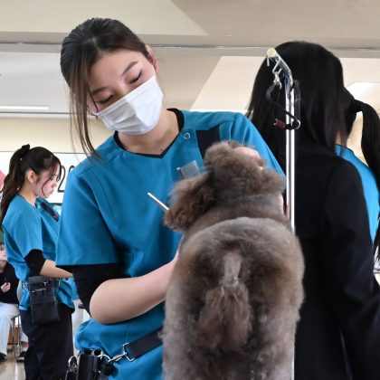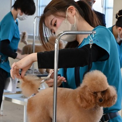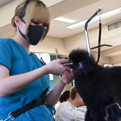 先日行われたNAVA2級実技試験の結果より、選出されたグルーミング学科2年生10名が出場しました。。競技内容は、トイ・プードルのケネル&ラム・クリップです。