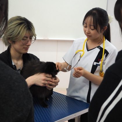 今日は丸ごと動物看護体験。参加者の皆様は、学生スタッフと一緒にたっぷり検査体験を行いました。