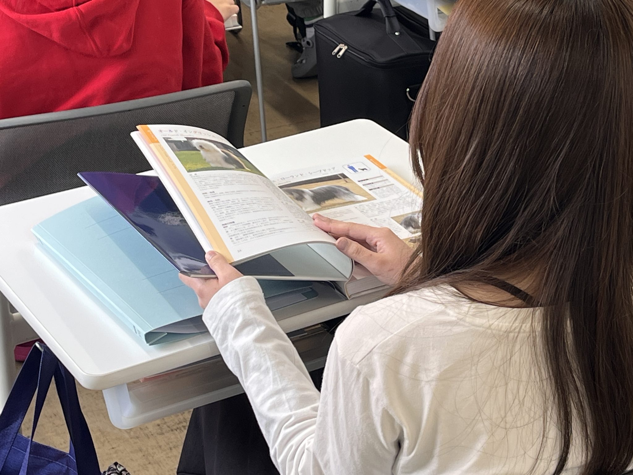 実習で使用する道具や機材、犬種ごとのグループ分けや犬種記号など、多くの内容に触れ、学生たちはこれから始まる新しい学びに目を輝かせていました。