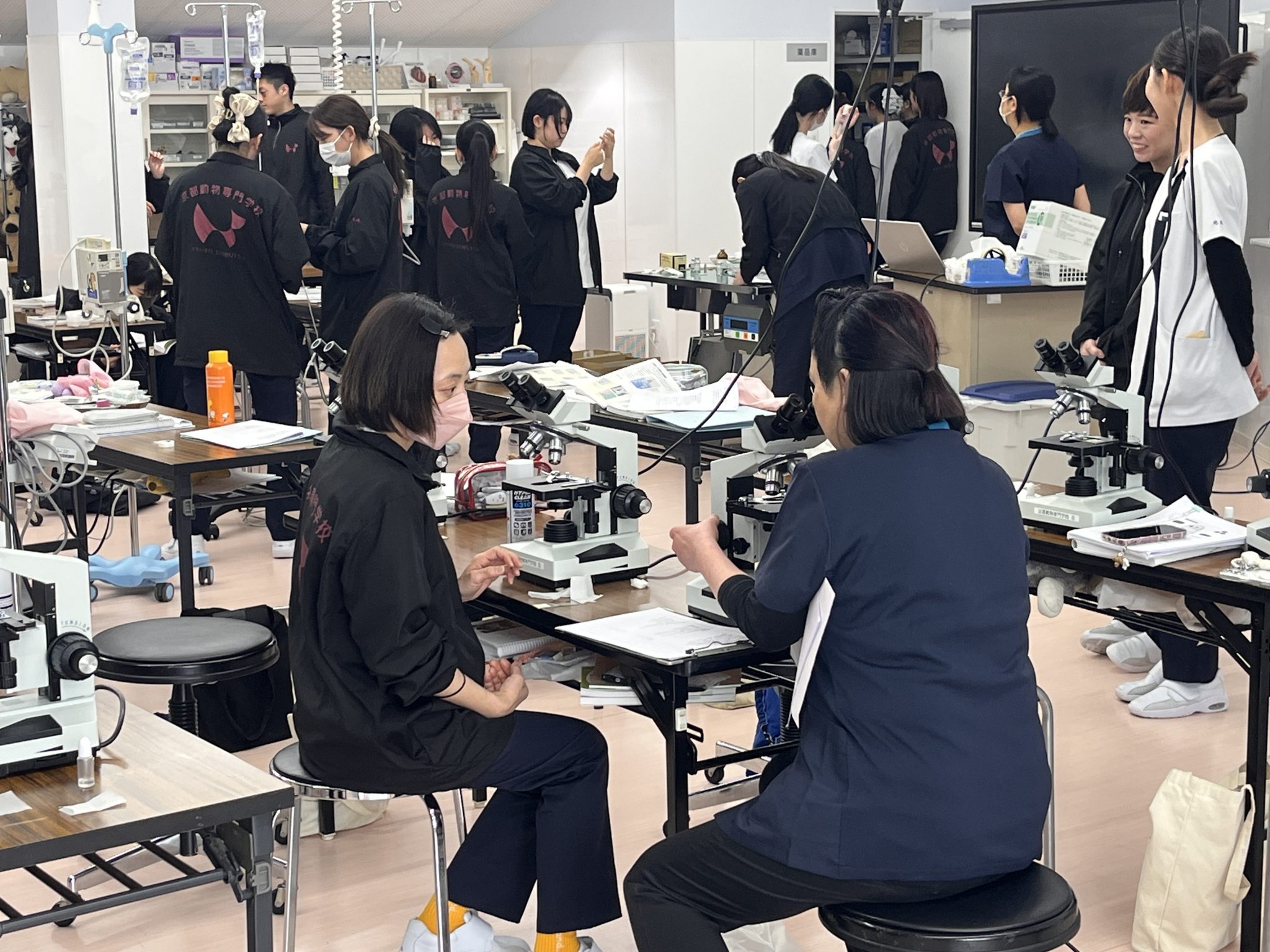 一方、愛玩動物看護学科では3年生が実習授業に取り組んでいました