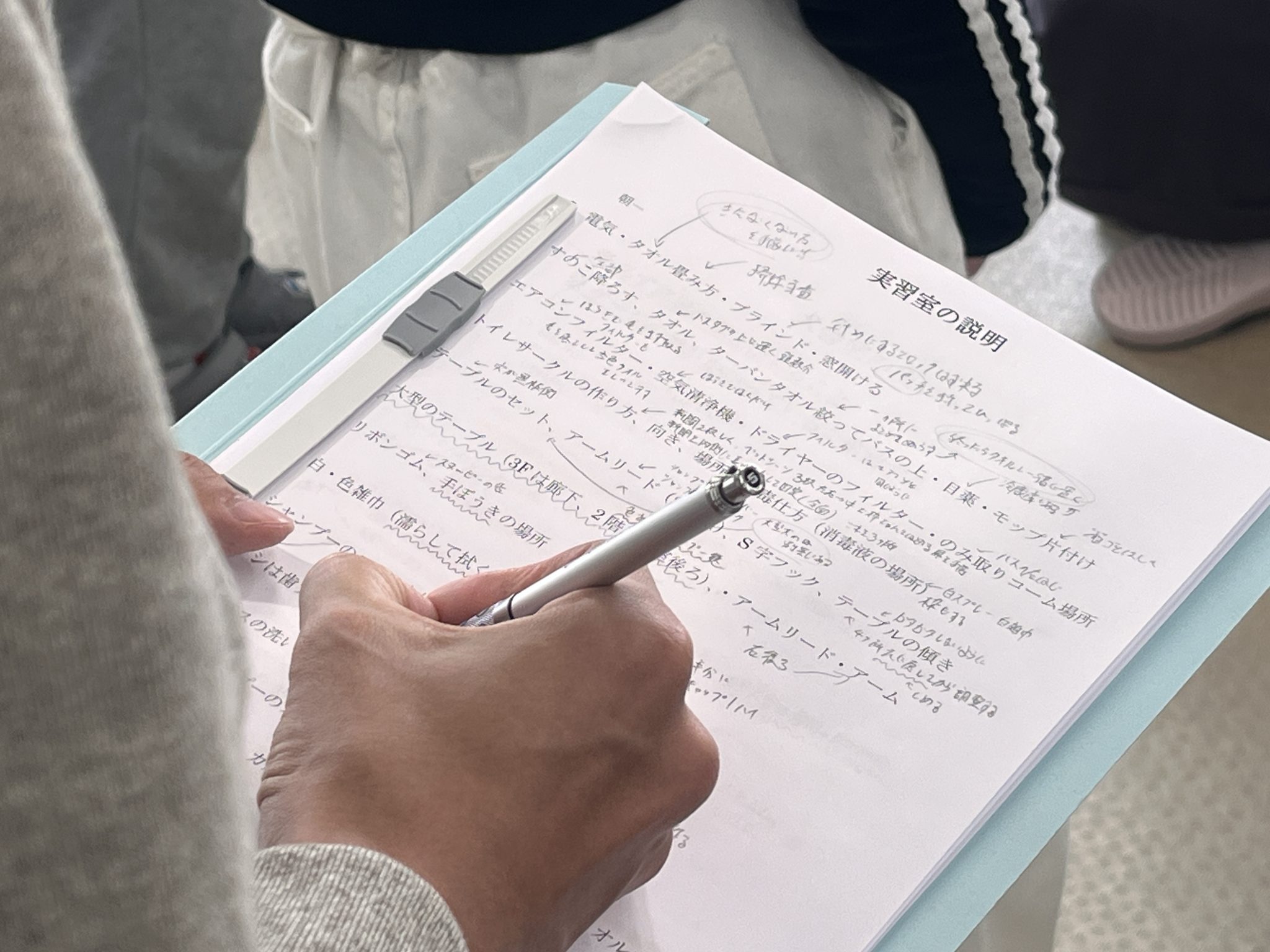 今回 学生たちが学んでいるのは、”実習室の使い方”です。